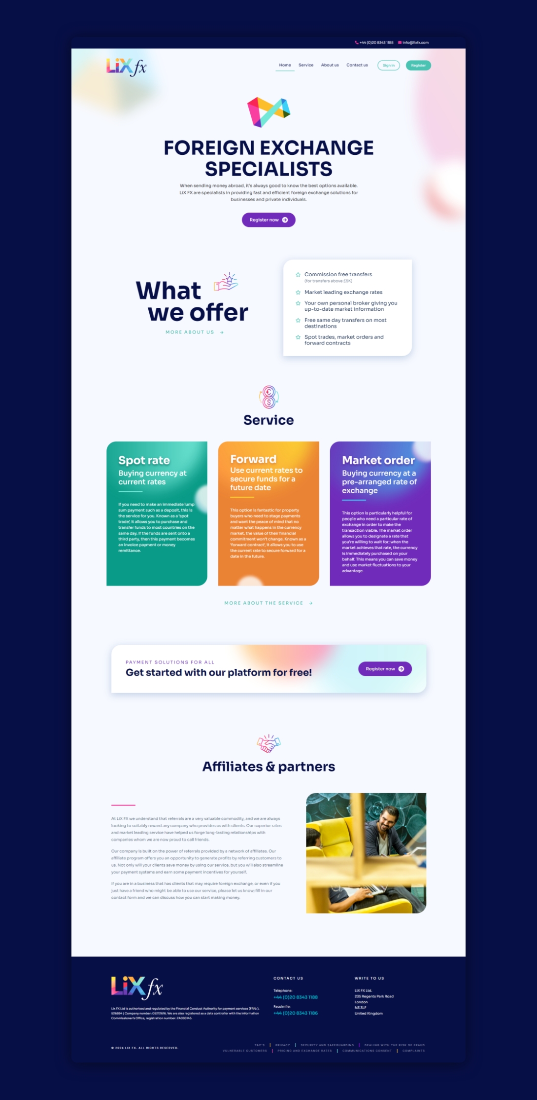 Given the challenge of creating a website that seamlessly complements LiX FX’s distinctive brand identity, we developed a visually captivating design that captures the essence of their brand spirit. The result is a modern, engaging online presence that reflects LiX FX’s innovative approach to compliance and payment solutions.